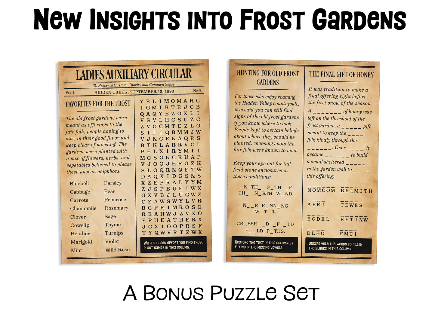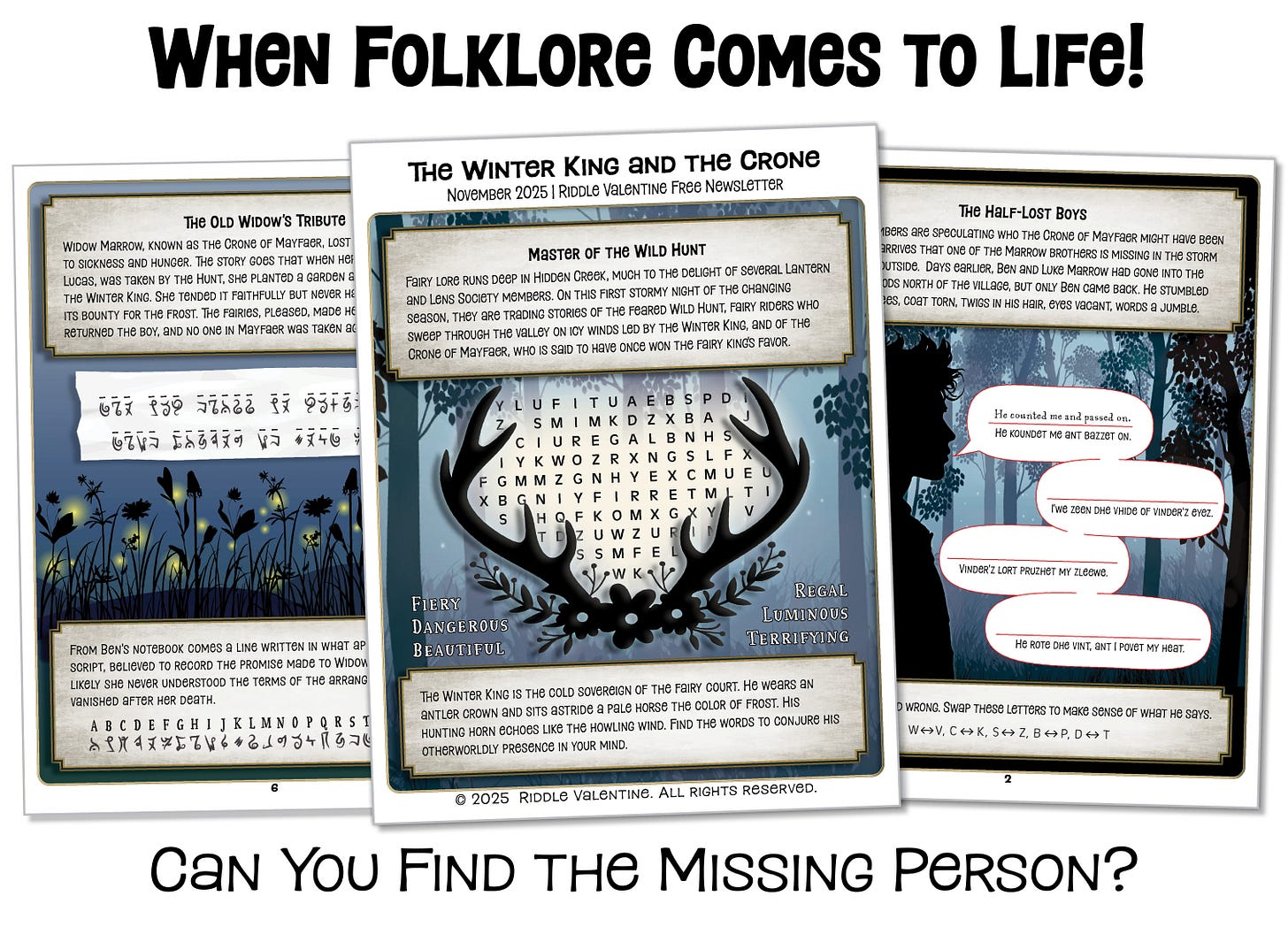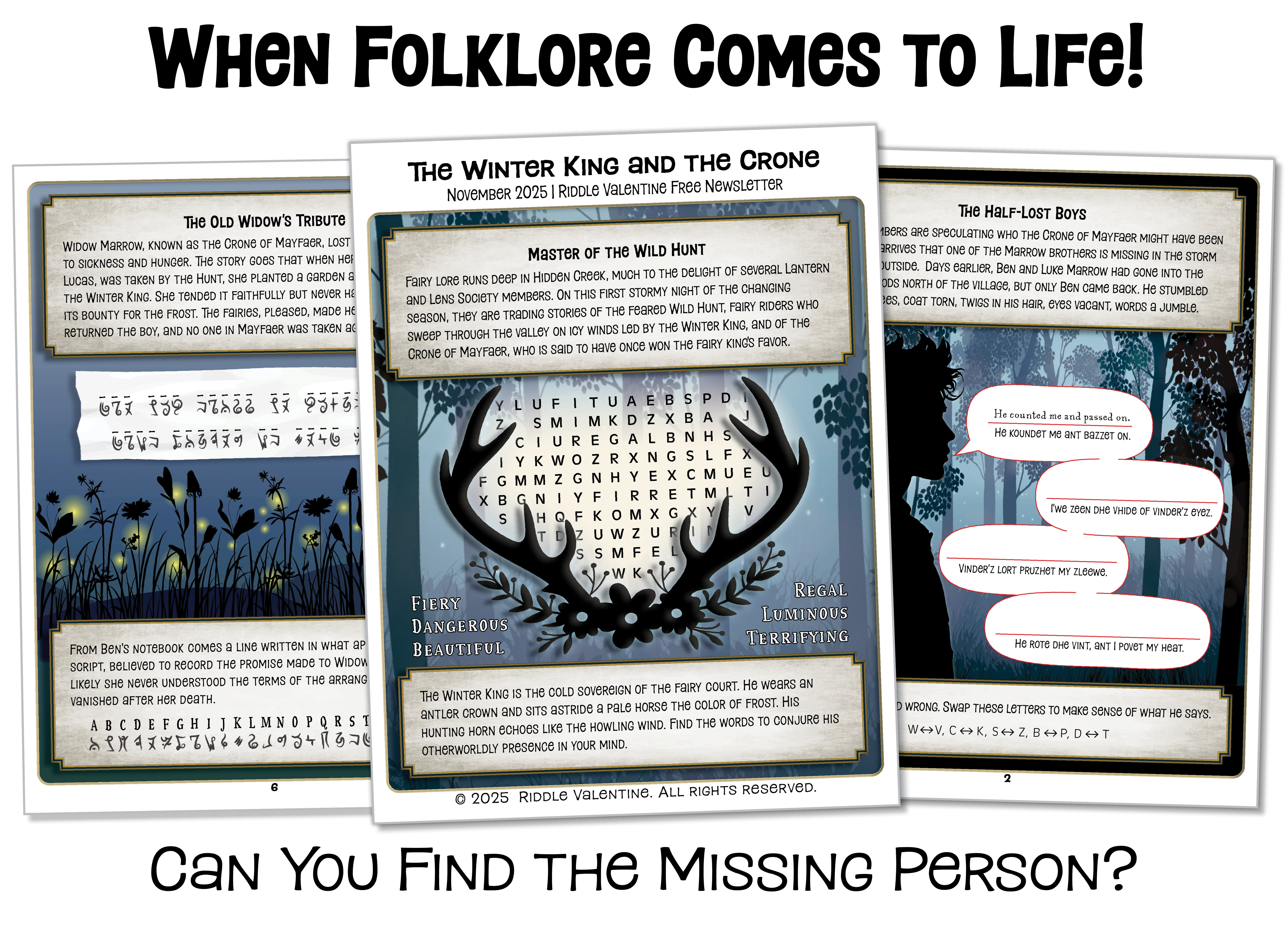 You voted for November’s mystery in last month’s newsletter, and a Folklore Tale won by a wide margin. I loved researching old folklore for this puzzle set, and now every blustery wind makes me think of fairies.