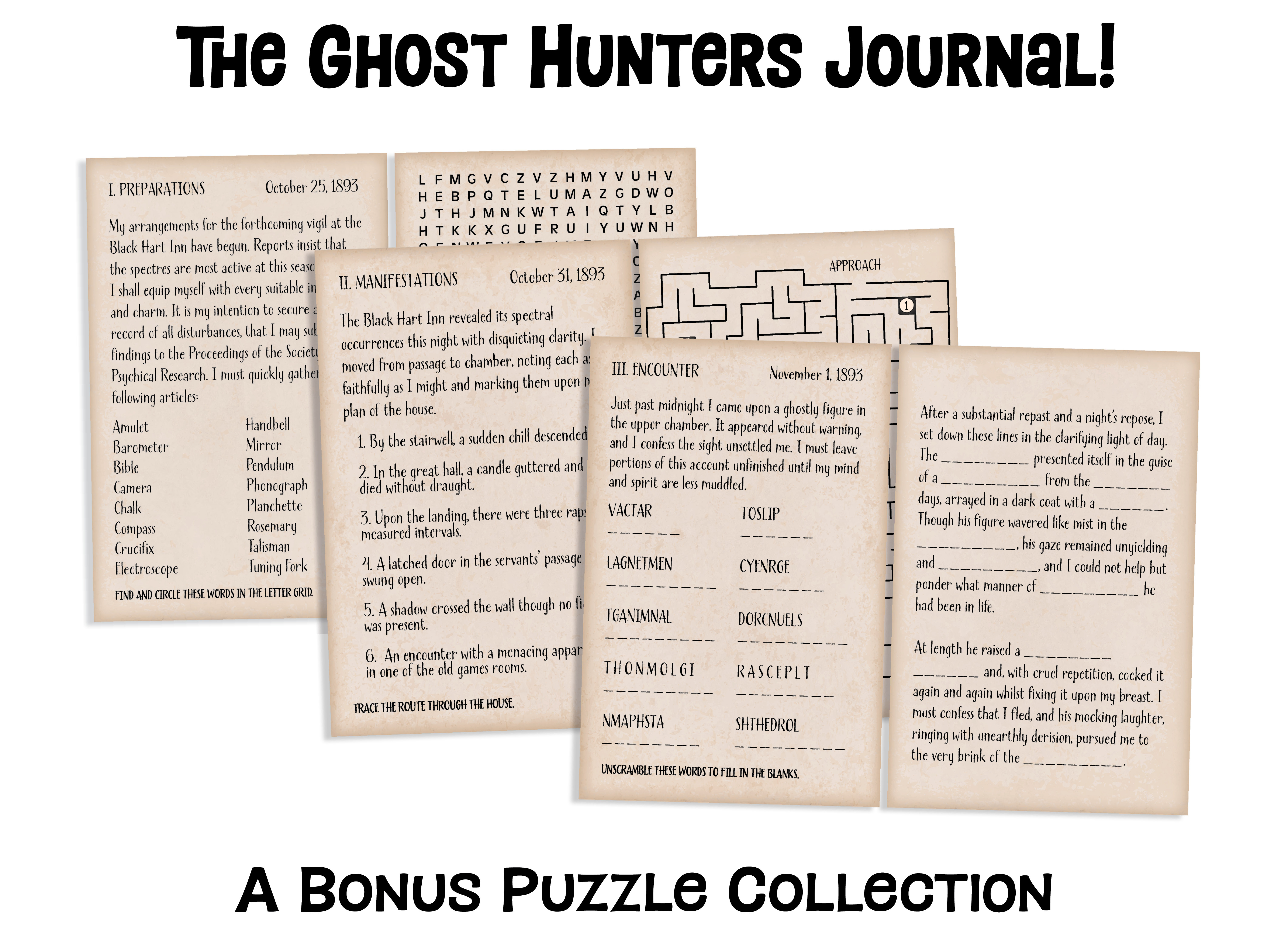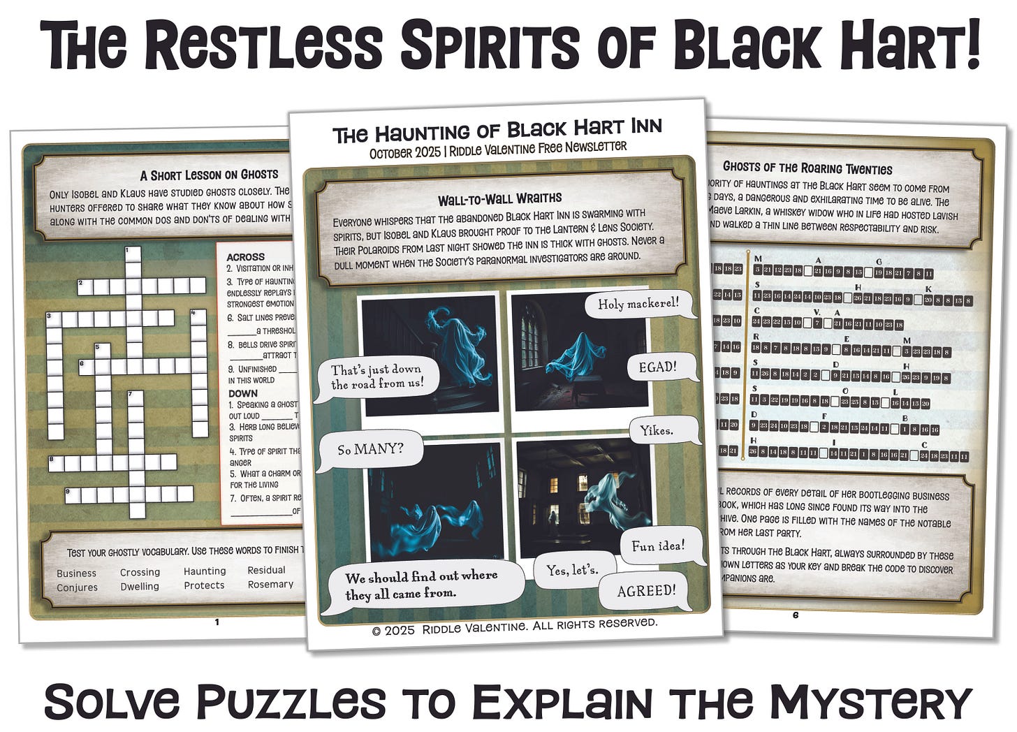 Inside this cozy mystery, you’ll solve a variety of puzzles to find out for yourself — where did all these ghosts come from? It includes a crossword, word search, word scramble, fill-in-the-blank, cryptogram, and more.
